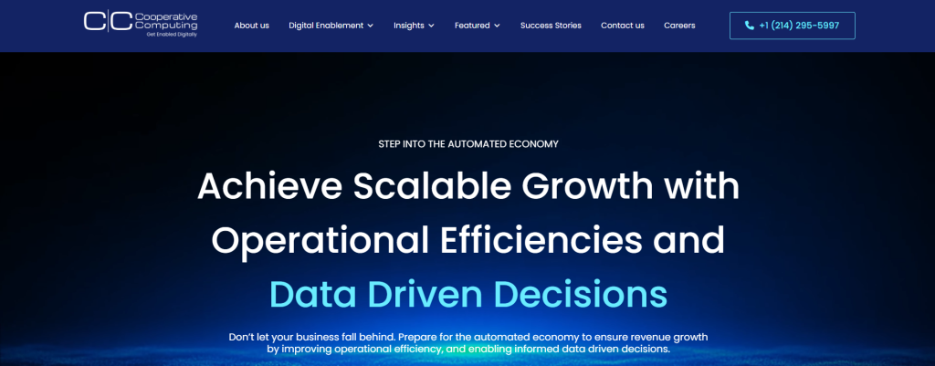 Cooperative Computing focuses on enabling businesses to achieve scalable growth through operational efficiencies and data-driven decisions. They aim to be the top digital enablement organization, helping high-growth companies navigate the automated economy with innovative solutions and superior client experiences.